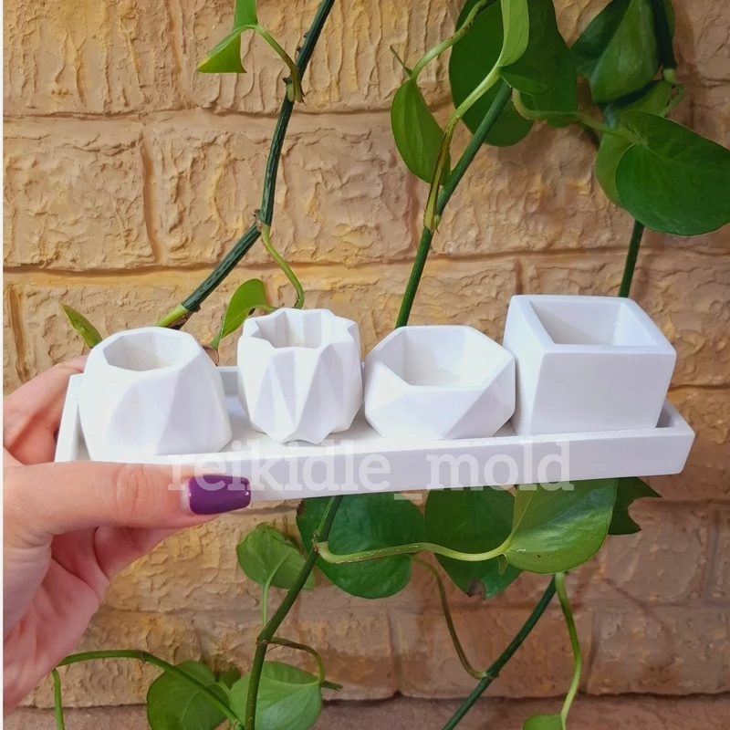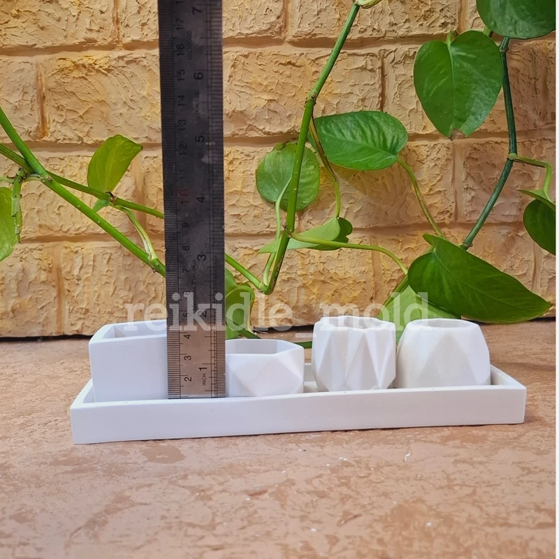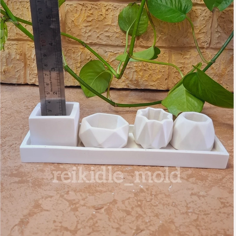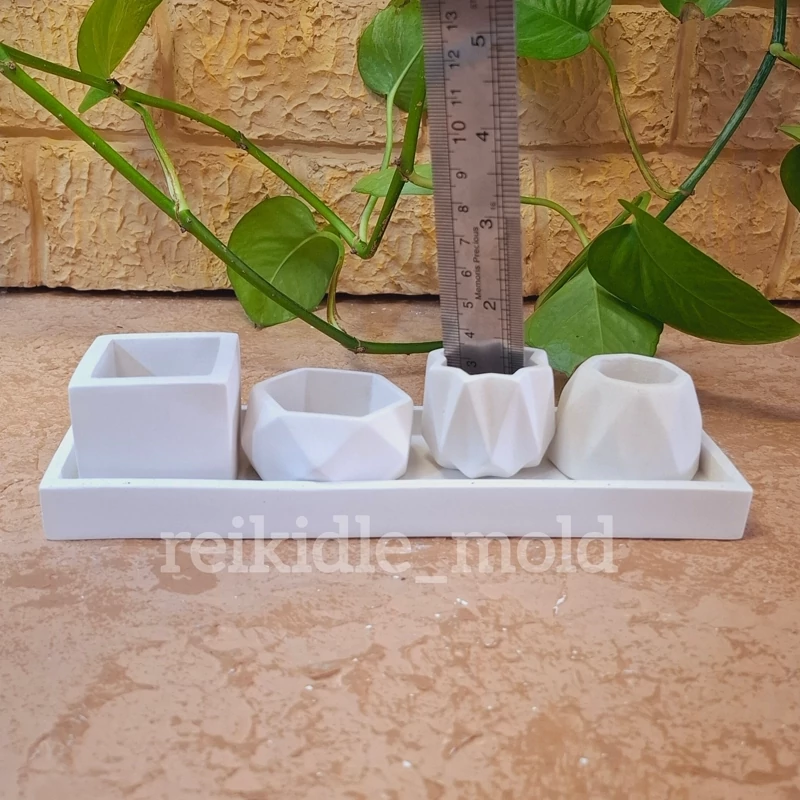 💥قالب سیلیکونی ست گلدان های مینیاتوری با سینی(ست 5 تکه)مخصوص کار با پودر سنگ و انواع پودر مجسمه سازی...