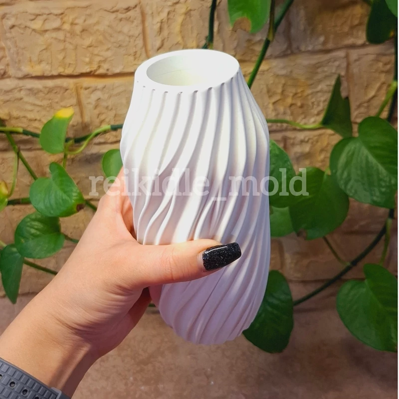 💥قالب سیلیکونی گلدان موج دار مخصوص کار با پودر سنگ و انواع پودر مجسمه سازی...