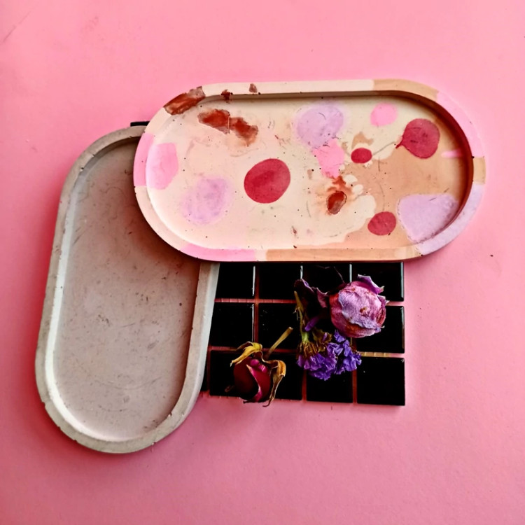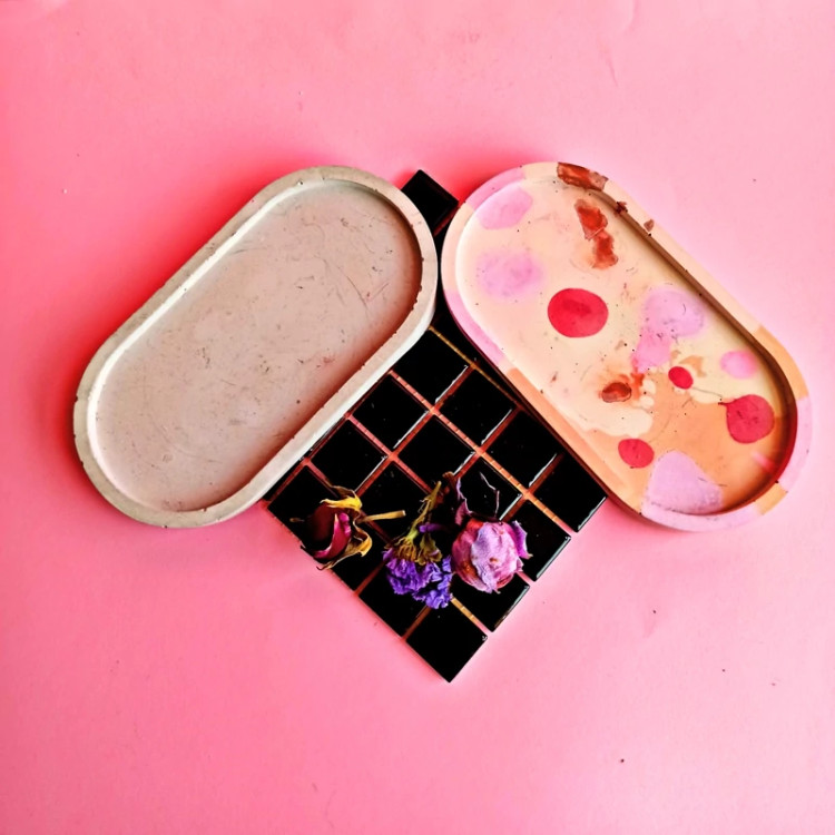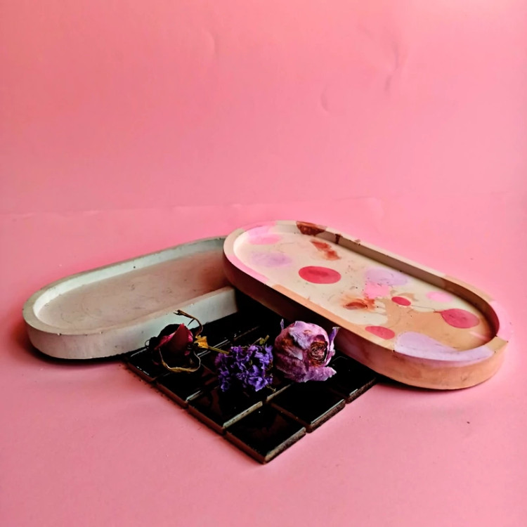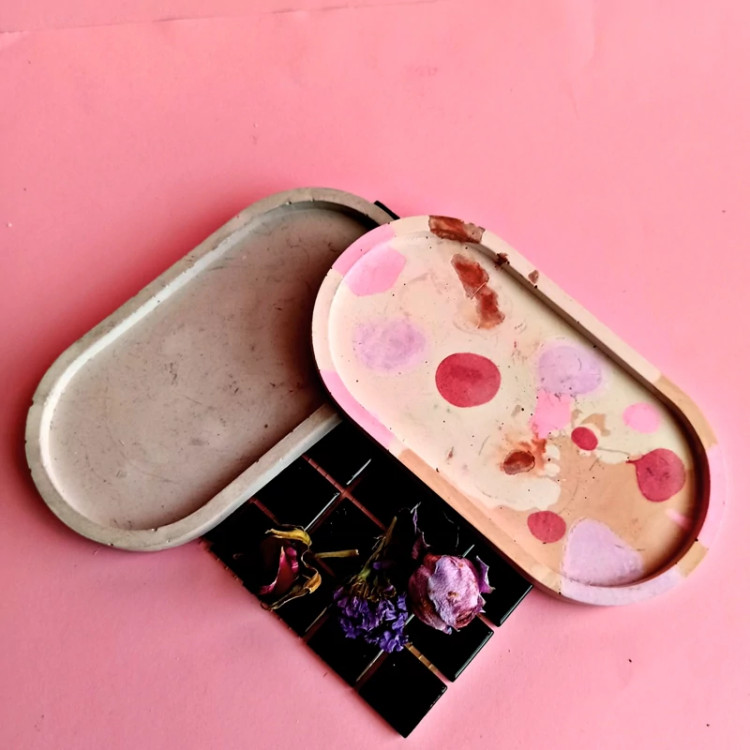 قالب سیلیکونی سینی طرح بیضی ۱۷/۵×۹/۵ مناسب تولید انواع ظروف بتنی و پودر سنگ و رزین و... حبابگیری شده با دستگاه وکیوم کاملا نرم، منعطف، باکیفیت و شفاف